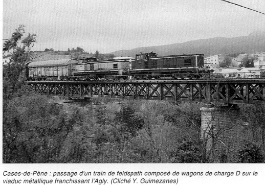 Embarquons pour rallier la haute vallée de l'Aude. Sur des rails DC (double champignon) Midi de 38 kg/mètre, nous quittons au PK 470,7 la gare de Rivesaltes, capitale d'un muscat réputé, pour nous engager sur un parcours aisé dans une large vallée où serpente et flâne la rivière Agly. De part et d'autre dominent les premiers contreforts des Pyrénées où s'accrochent les ceps de vigne qui céderont vite la place aux garrigues méridionales dans un décor parsemé de rocailles, presque "westernien". Les gares s'égrènent rapidement : Espira de l'Agly-Baixas (qui devait très vite perdre son second nom au profit de la gare CPO, plus proche de Baixas). Au PK 467,3 s'annonce déjà Cases-de-Pène, suivie par le viaduc métallique très pittoresque qui permet de franchir la route et la rivière, pour les longer jusqu'à Estagel avec des rampes maximum de 10 pour mille.