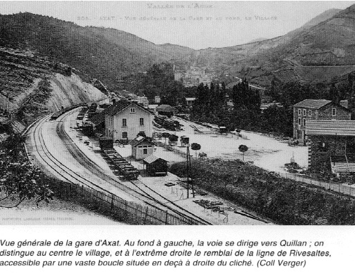 La gare d'Axat-Aude, où l'essentiel des expéditions était constitué de grumes et de minerais, fut elle aussi le point de départ projeté pour deux tracés audacieux des T.A. en direction de Carcanières et Belcaire, qui ne virent jamais le jour. De grands efforts financiers et humains auraient encore été nécessaires dans cette région peu peuplée, mais avec quelles retombées à en attendre ?