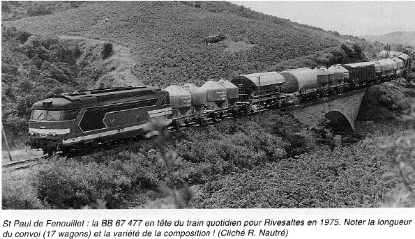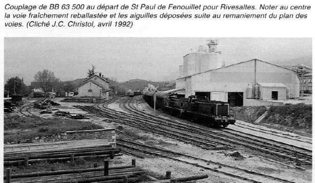 Des pentes proches, on extrayait la dolomie livrée en gare par un câble porteur. Terminus temporaire entre 1901 et 1904, St Paul de Fenouillet disposait en face du B.V, d'une remise machines à deux voies avec château d'eau, le seul avant Quillan.
