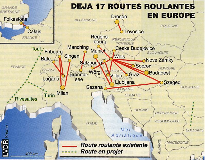 on compte pas moins de 18 routes roulantes (y compris Eurotunnel)